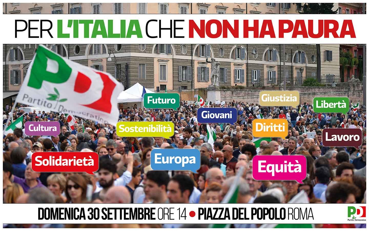 Scendiamo in piazza per costruire un’alternativa alla politica dell’odio, del declino, dell’isolamento e della paura. Scendiamo in piazza perché tante persone vogliono un Paese diverso: più giusto, più forte, più solidale, aperto al mondo e al futuro. Le paure e le preoccupazioni che hanno i cittadini vanno riconosciute e possono essere superate soltanto insieme; soltanto unendo le forze perché nessuno si senta solo. Scendiamo in piazza perché costruire questa alternativa democratica è il nostro impegno.