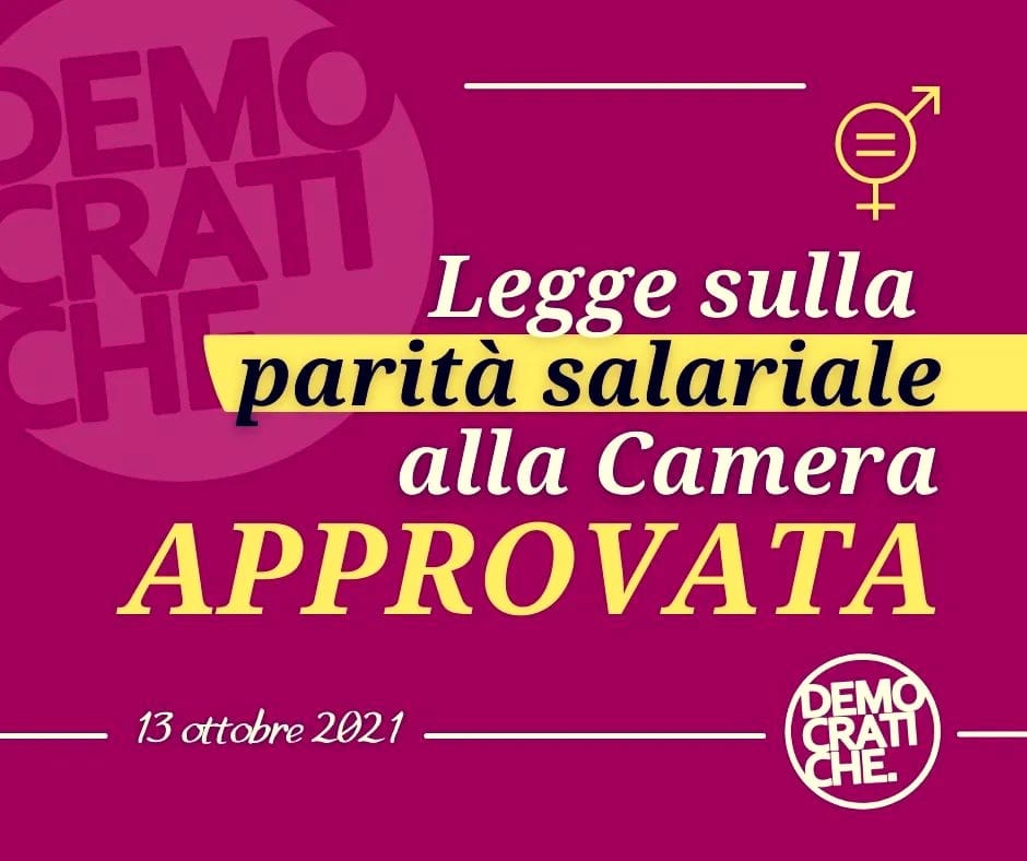 Approvata oggi alla Camera la legge per la parità salariale. Questa legge è per le 470 mila donne che hanno perso il lavoro durante la pandemia.