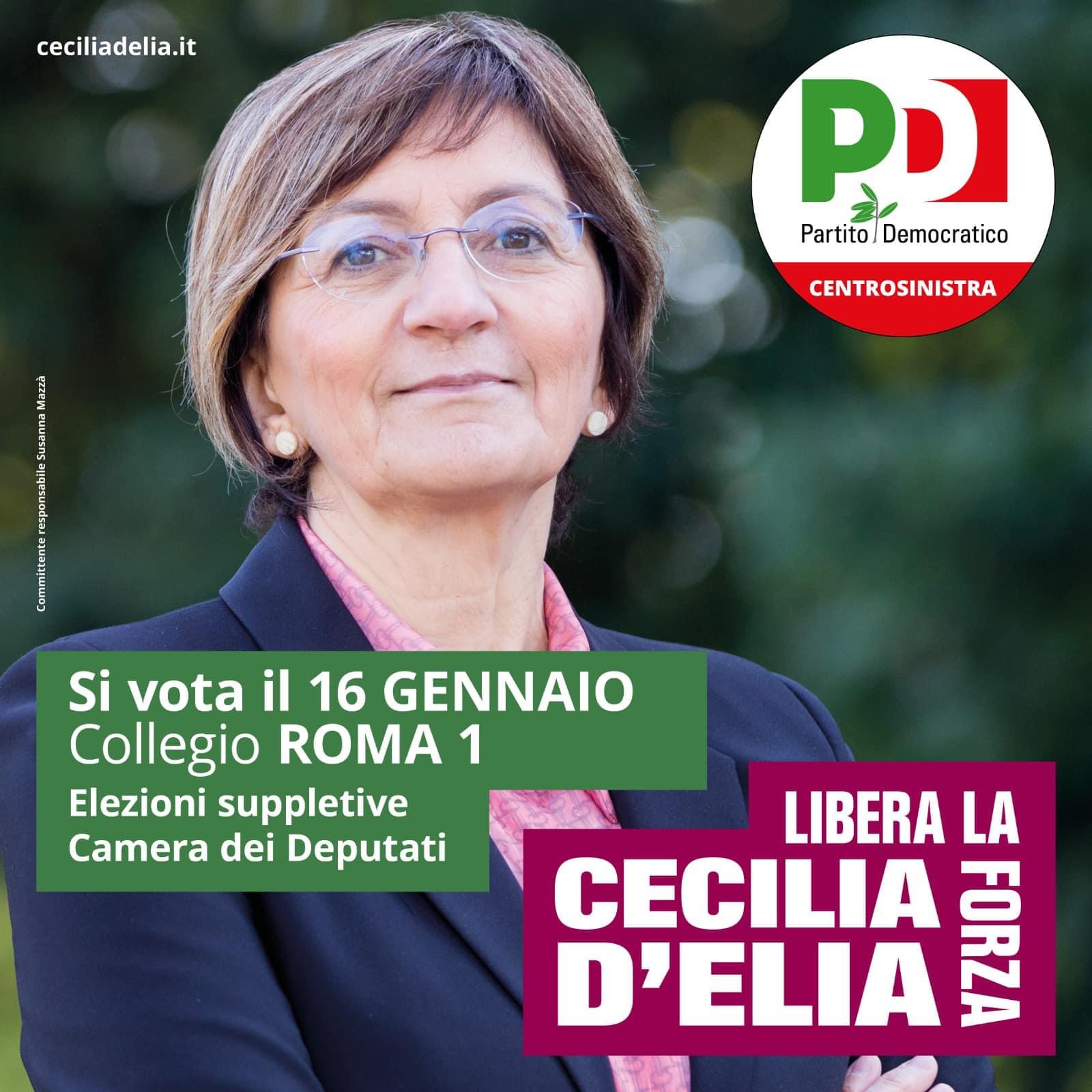 Il 16 gennaio prossimo una parte della nostra città sarà chiamata a votare per le elezioni politiche suppletive nel Collegio uninominale Lazio 1-01. Il Partito Democratico e tutto il centrosinistra hanno scelto di candidare Cecilia D’Elia, oggi portavoce della Conferenza nazionale delle democratiche. Laureata in filosofia a Siena, diventa dirigente nazionale della Federazione giovanile comunista nel 1988, da lì un percorso che l’ha portata in Provincia prima con Gasbarra e poi con Zingaretti, fino al Comune di Roma con Walter Veltroni. Da sempre al fianco delle donne e per le donne, saprà farsi interprete delle tante giuste battaglie portate avanti in questi anni. In un momento così complesso per il nostro paese, poter contare sulla sua esperienza e determinazione sarà per tutti noi fondamentale. Per questo, alle elezioni suppletive del 16 gennaio prossimo, ti chiedo di votare Cecilia D’Elia, la candidata del Partito Democratico e di tutto il centrosinistra. Grazie di cuore,