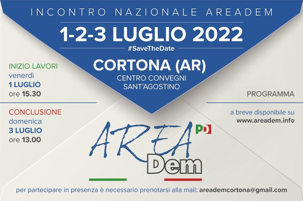 Pd, dal 1 al 3 luglio Areadem si riunisce a Cortona, venerdì incontro Letta, Conte e Speranza