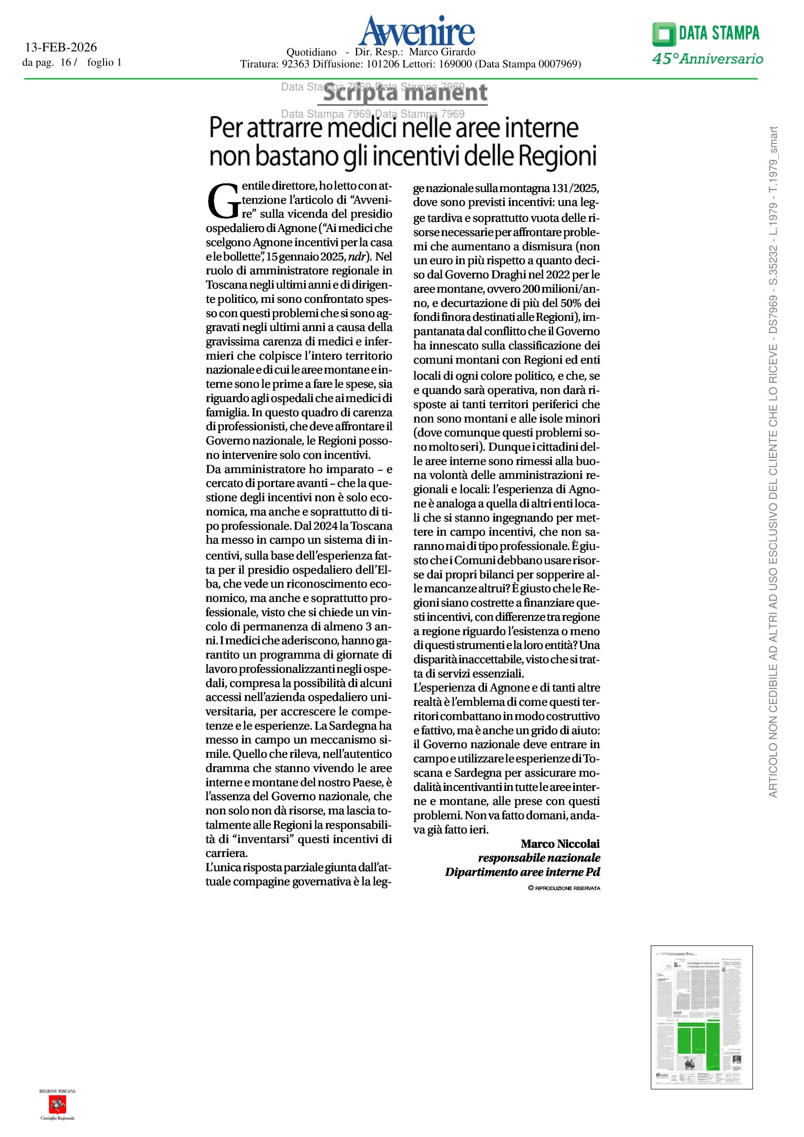 Articolo di Marco Niccolai su "Avvenire"